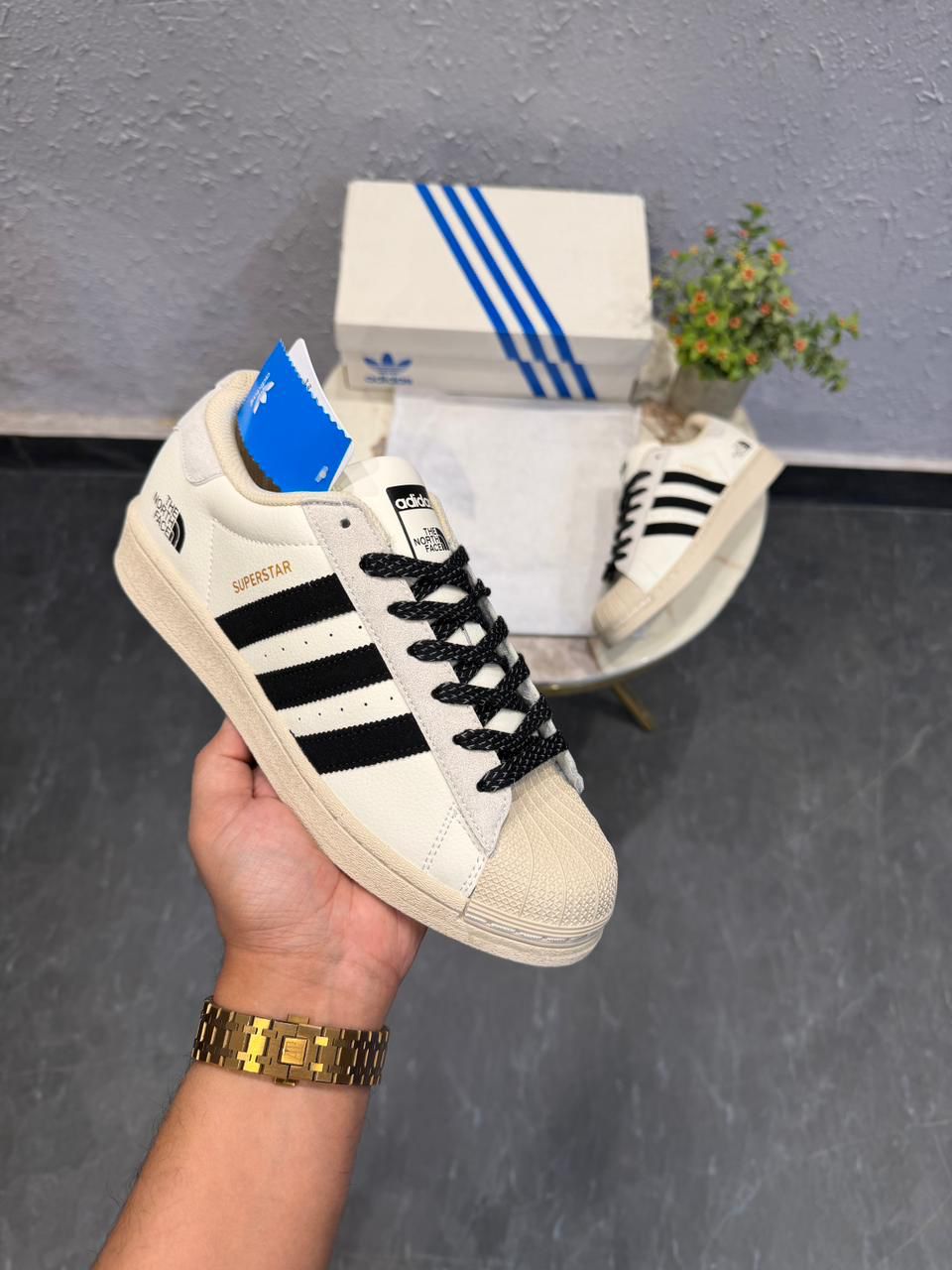 ADIDASE ORIGINAL SUPERSTAR WHITE BLACK NORTH FACE
